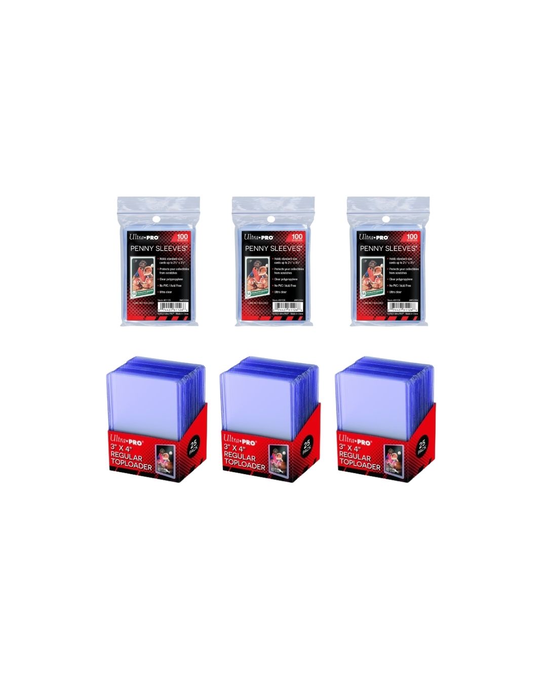 Il Bundle Contiene: 🔴 3 conf. Penny Sleeves (Bustine morbide) 🔵 3 conf. Toploader 3"x4" (Plastica rigida 35pt)